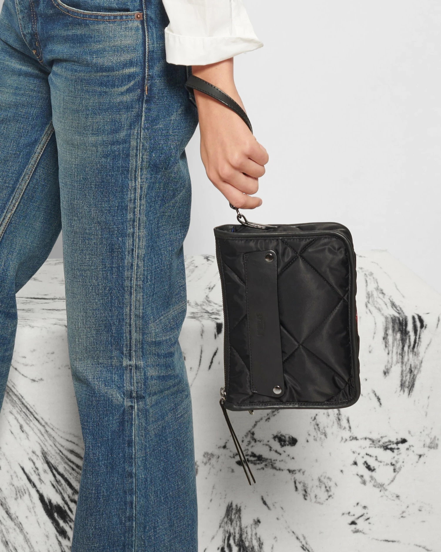 The Quilted Madison Convertible Crossbody is three bags in one. Use the adjustable strap as a crossbody, the removable leather wrist strap as a wristlet, or on its own as a clutch. Made with our 100% recycled nylon and Italian leather detailing, it includes metal zippers and the signature Madison front pocket detail.