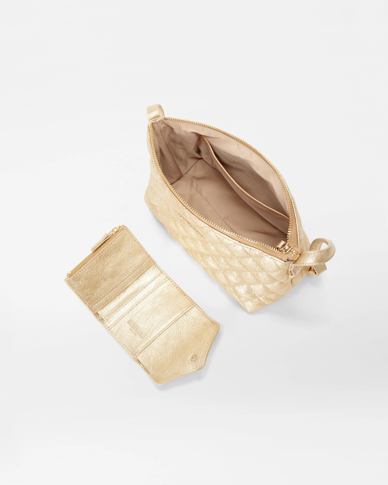 Our new Mini Buckle Shoulder comes with our fan-favorite Mini Katherine Wallet in matching gold Italian leather.