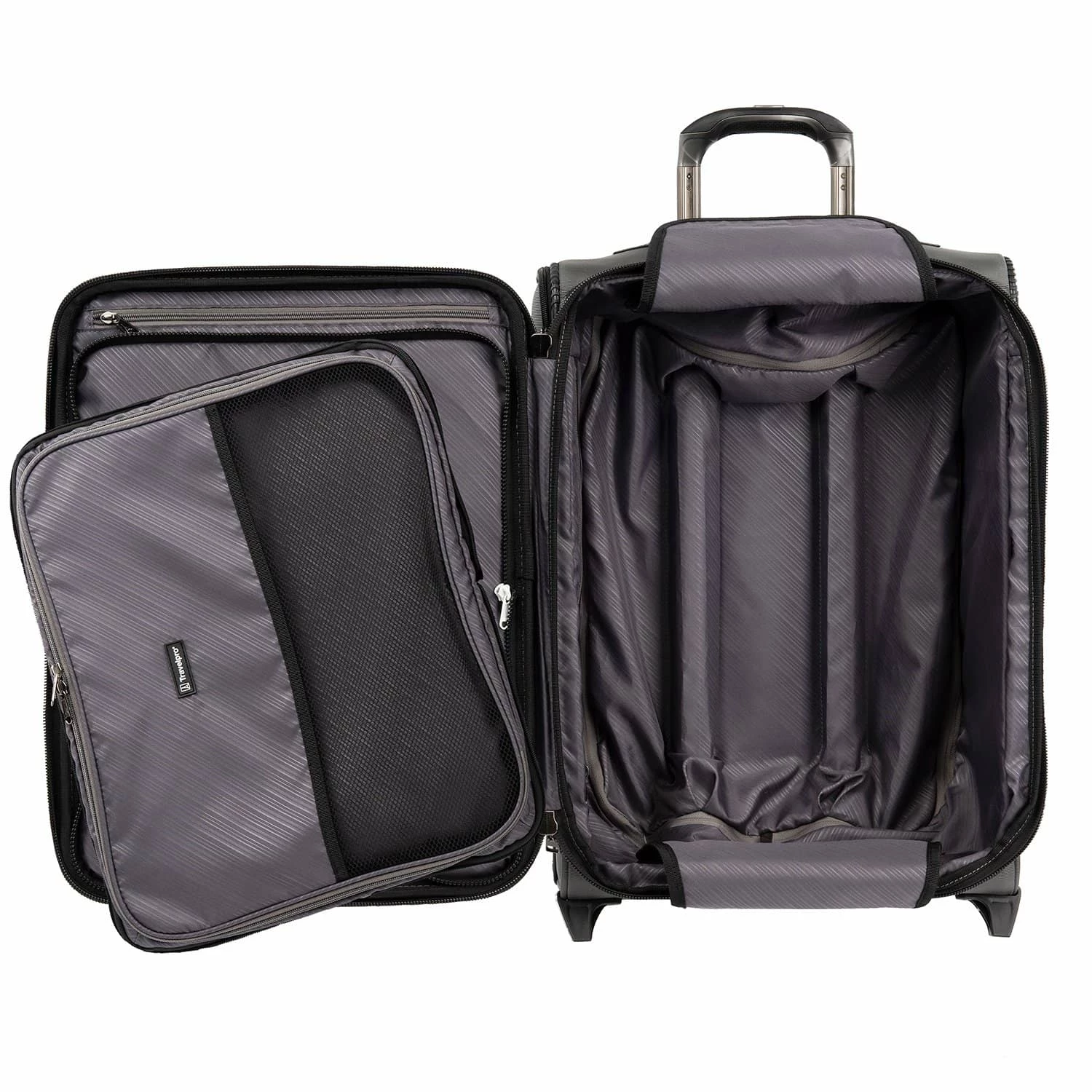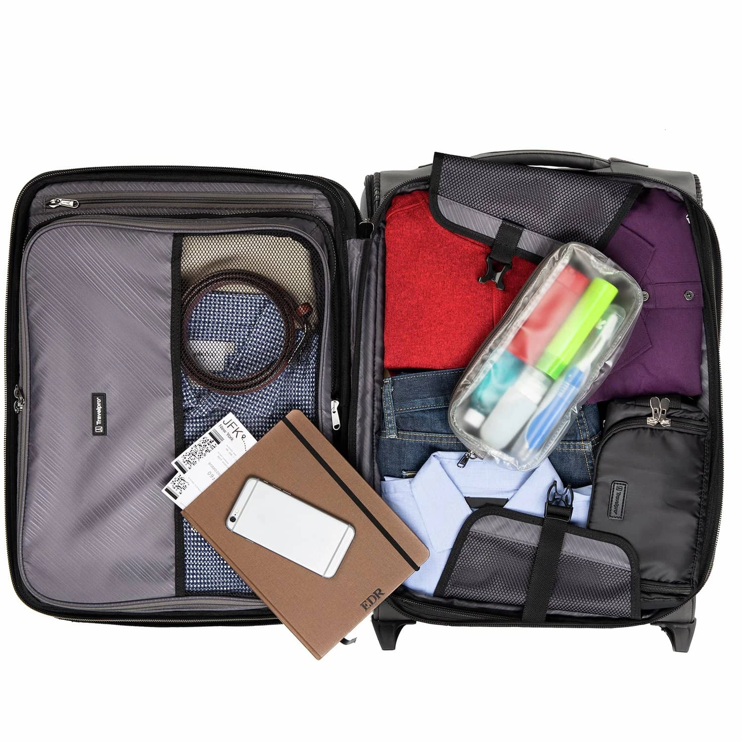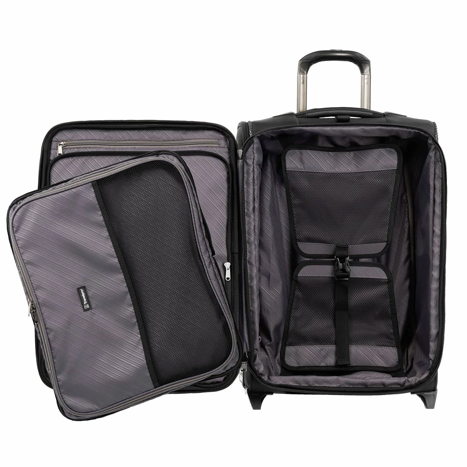 Pack to the Max with luggage that is truly all your own. The Max Carry-on Expandable Rollaboard® is designed for total packing versatility and customizable with a variety of interchangeable Travelpro® exclusive Zip-In Organizers. Included inside the lid is a removable Zip-In Garment Organizer, ideal for storing folded shirts, dresses and jackets. Also available for purchase separately are four additional coordinating Travelpro® exclusive Zip-In Organizers–a Laundry Organizer for bathing suits, workout clothes and other damp items, a Packing Cubes Organizer for shorts, t-shirts and accessories, a Suitor Organizer to keep hanging clothes wrinkle-free and an All-In-One Organizer for wet and dry storage (each sold separately).
