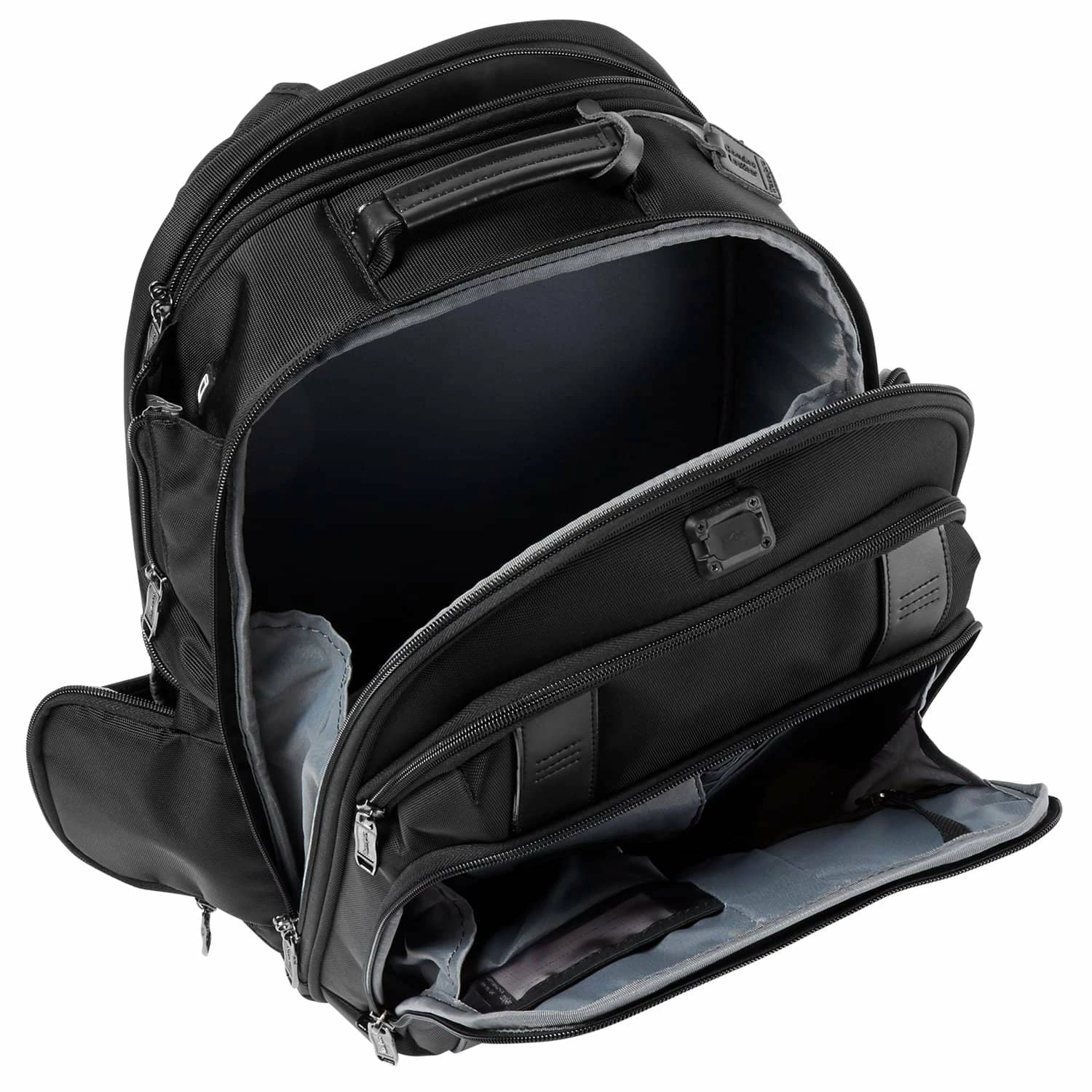 The Crew™ Executive Choice™ 2 Checkpoint Friendly Backpack is designed for high-mileage fliers and execs on the move with built-in organization, separate laptop and tablet pockets, an external USB port and Travelpro® ID TheftBlock™ security.