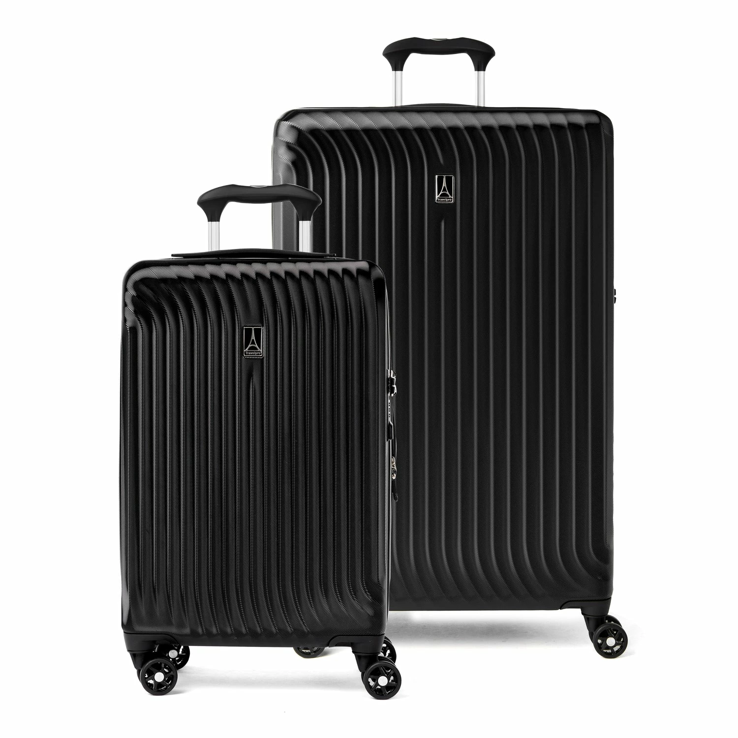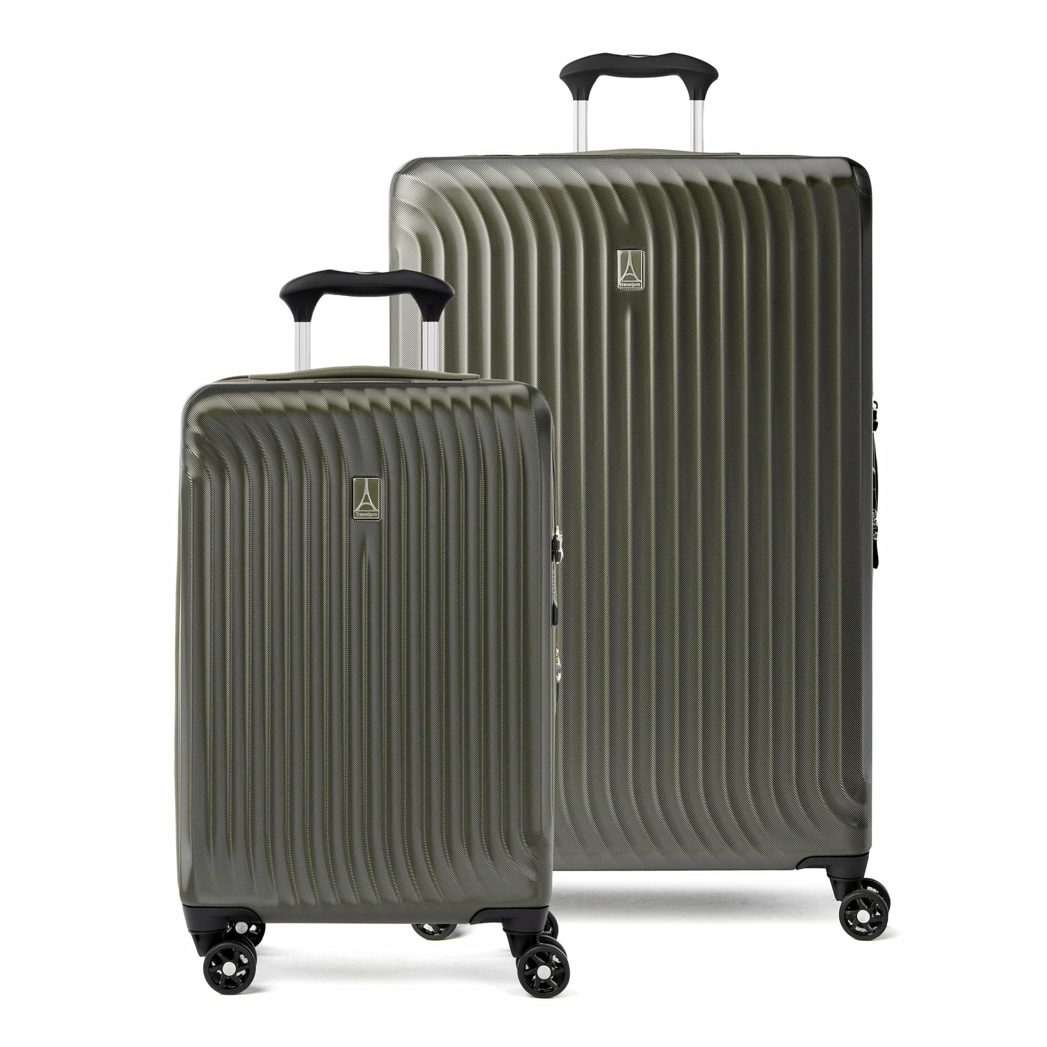 Go big and stay light with this hardside spinner set. . The lightweight, super durable Maxlite® Air Carry-on and Large Check-in Expandable Hardside Spinner set gives you all the benefits of hard sided luggage in a resilient, well-equipped suitcase set, perfectly sized longer trips. The 100% polycarbonate exterior is engineered to flex on impact to prevent splitting, cracking or punctures, while a stylish exterior finish reduces visible scratches or scuffs. A built-in lock allows TSA authorities to safely unlock and relock the bag for inspection when needed, and a zippered expansion option maximizes packing capacity when needed.