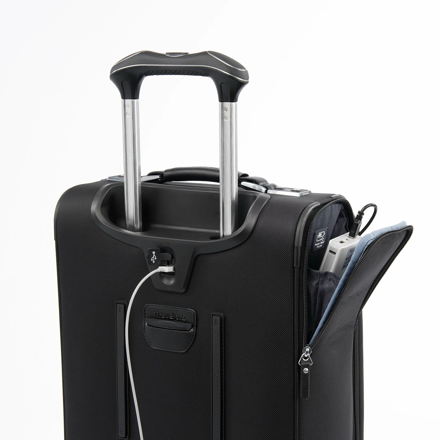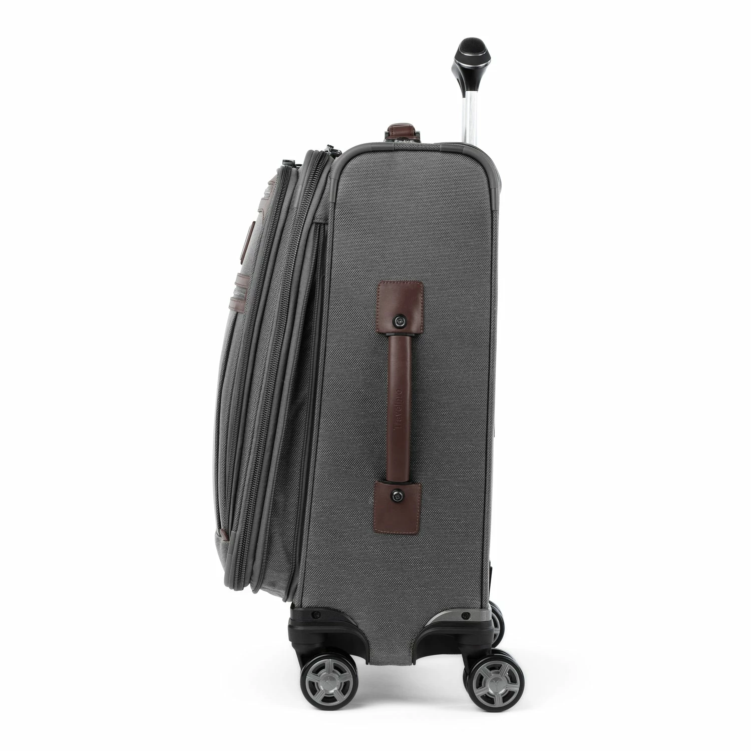 Maximize your carry-on with sophisticated style. The Platinum® Elite 21” Expandable Carry-On Spinner with USB delivers big on form and function with a tip-resistant expansion that offers up to 2” more packing capacity, deluxe tie-down system, integrated accessory pockets and a removable quart-size wet pocket that is TSA compliant and perfect for toiletries. Plus, the drop-in, fold-out suiter is specifically designed to accommodate hanging clothes and prevent wrinkling. Built-in USB port lets you power up on the go, while a dedicated power bank pocket for your back-up battery adheres to FAA regulations.