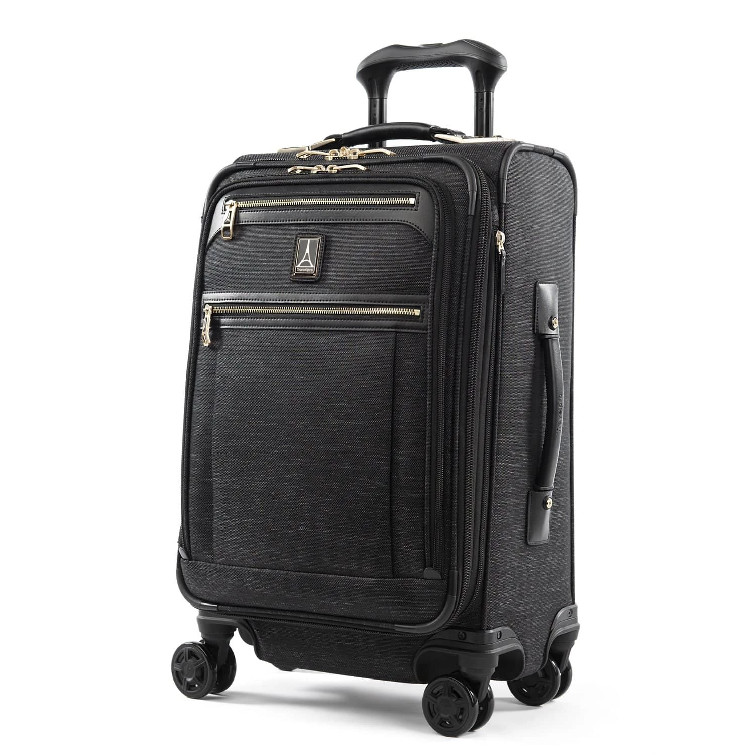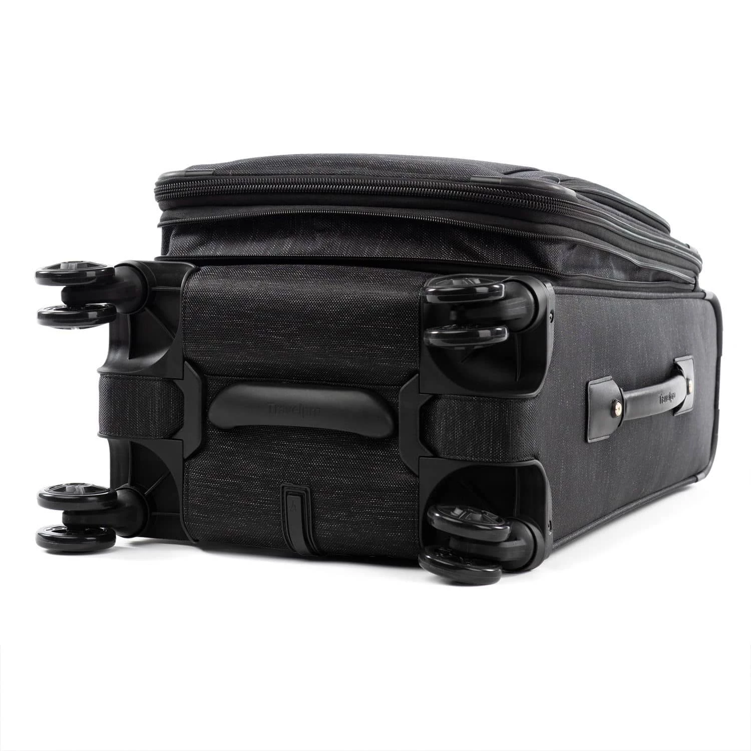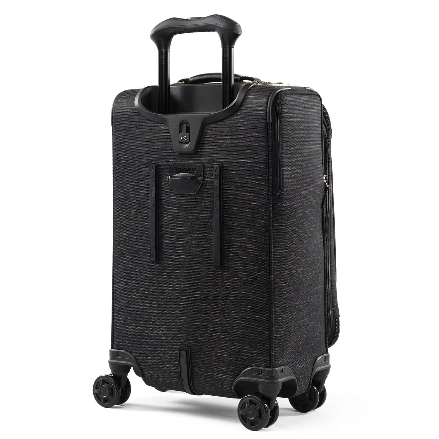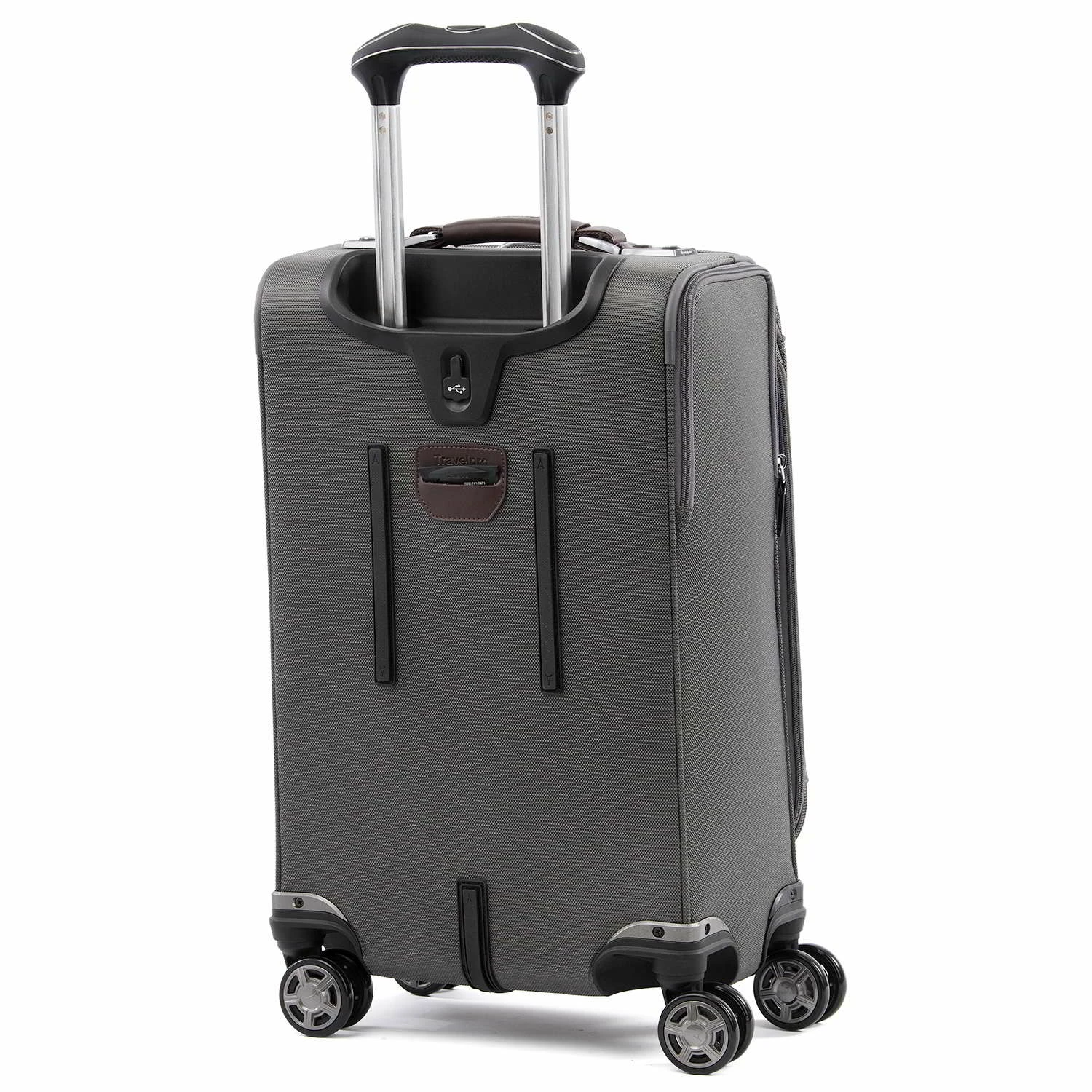 Perfect for short to medium-length trips, this carry-on spinner is crafted in style with premium fabrics, genuine leather and chrome zippers. Top-of-the-line mobility features include the PrecisionGlide™ system with eight MagnaTrac® self-aligning spinner wheels guided by an adjustable PowerScope extension handle with patented Contour Grip. Backed by our Built for a Lifetime Limited Worry Free Warranty.