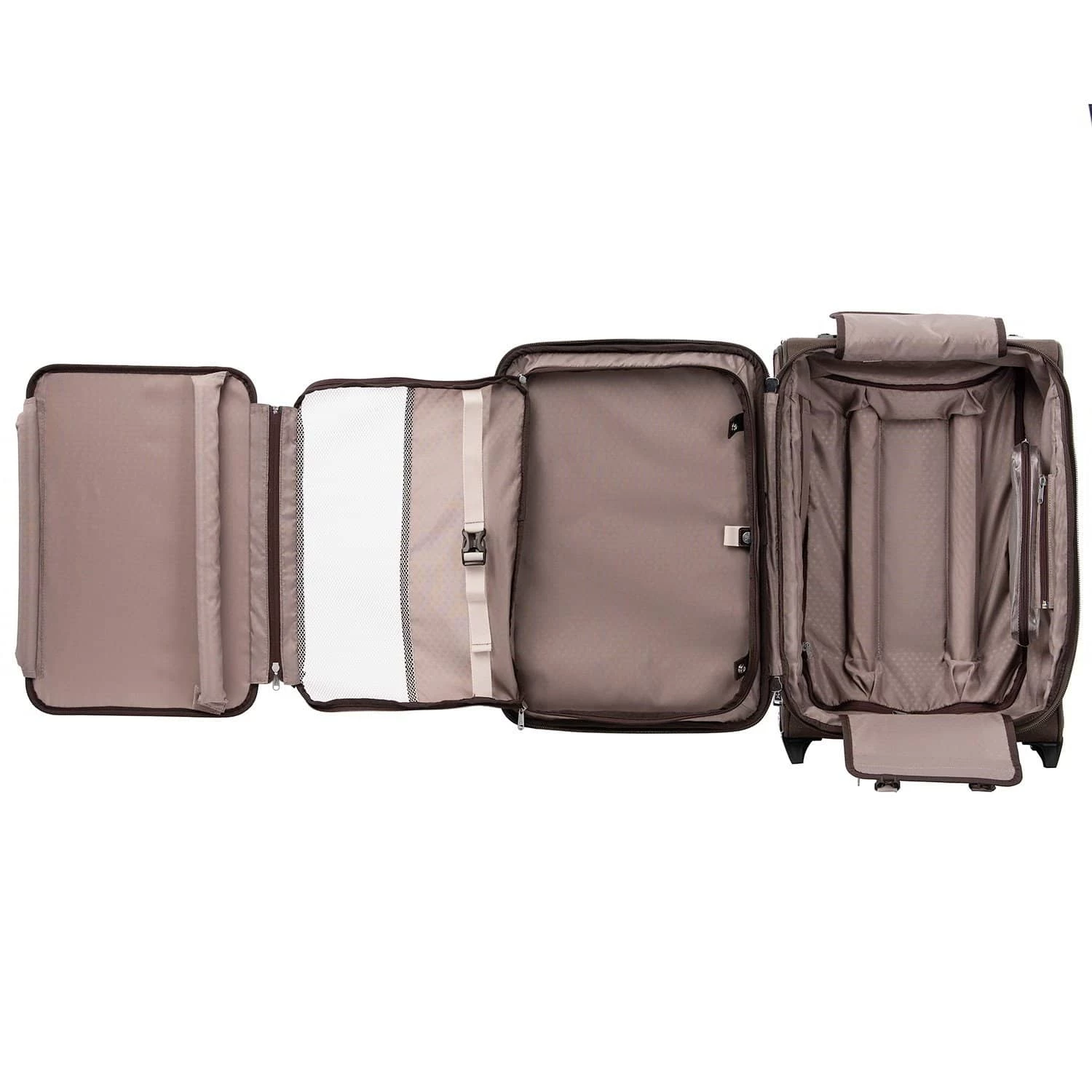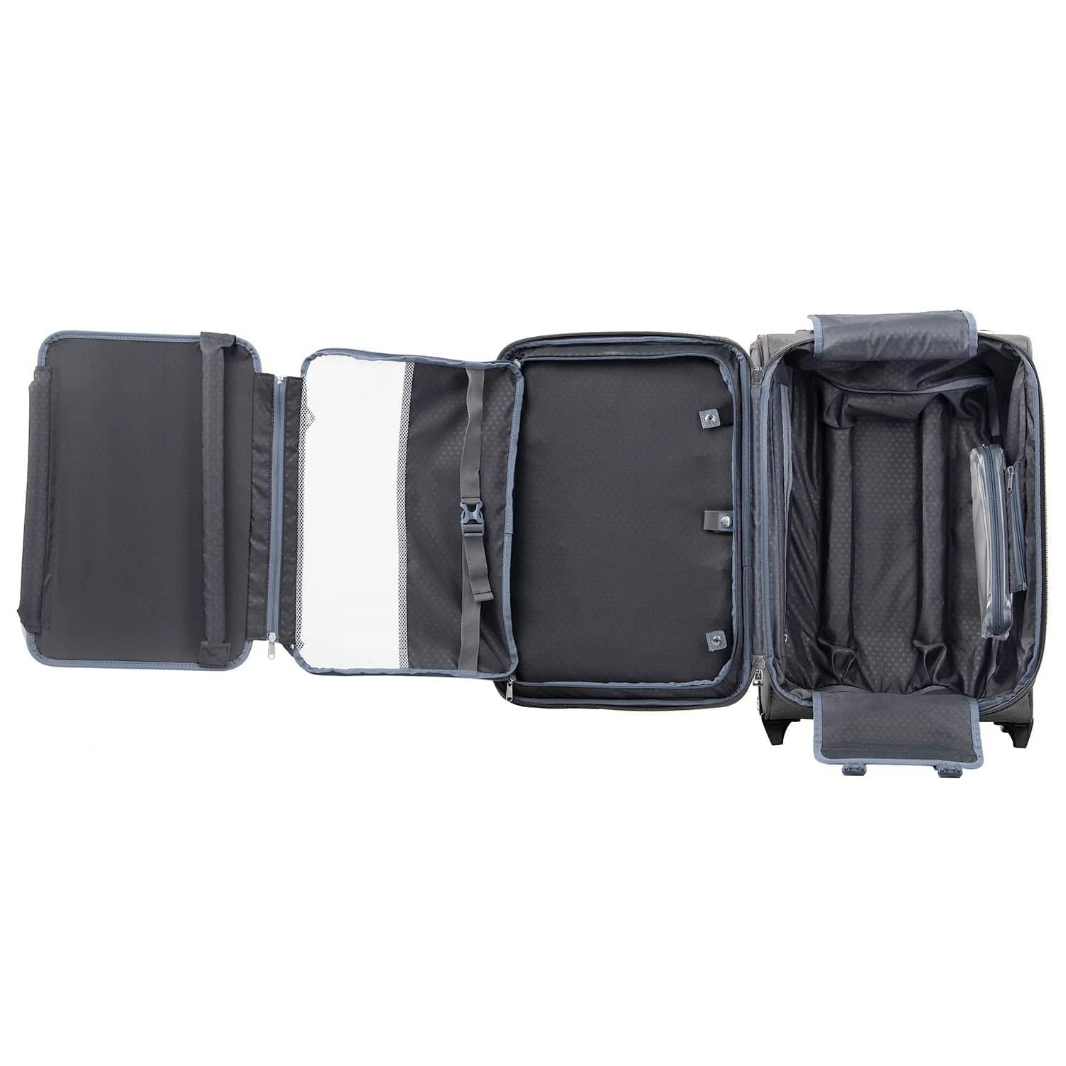 Never settle. Designed for the traveler who expects top performance without sacrificing style, the 22” Expandable Carry-On Rollaboard® Suiter handles short to medium-length trips without a wrinkle. Intelligent function comes in a tip-resistant tapered expansion design, built-in wrinkle-resistant suiter and deluxe tie-down system with easy-access accessory pockets, along with a removable, quart-size wet pocket that is TSA compliant and perfect for toiletries.