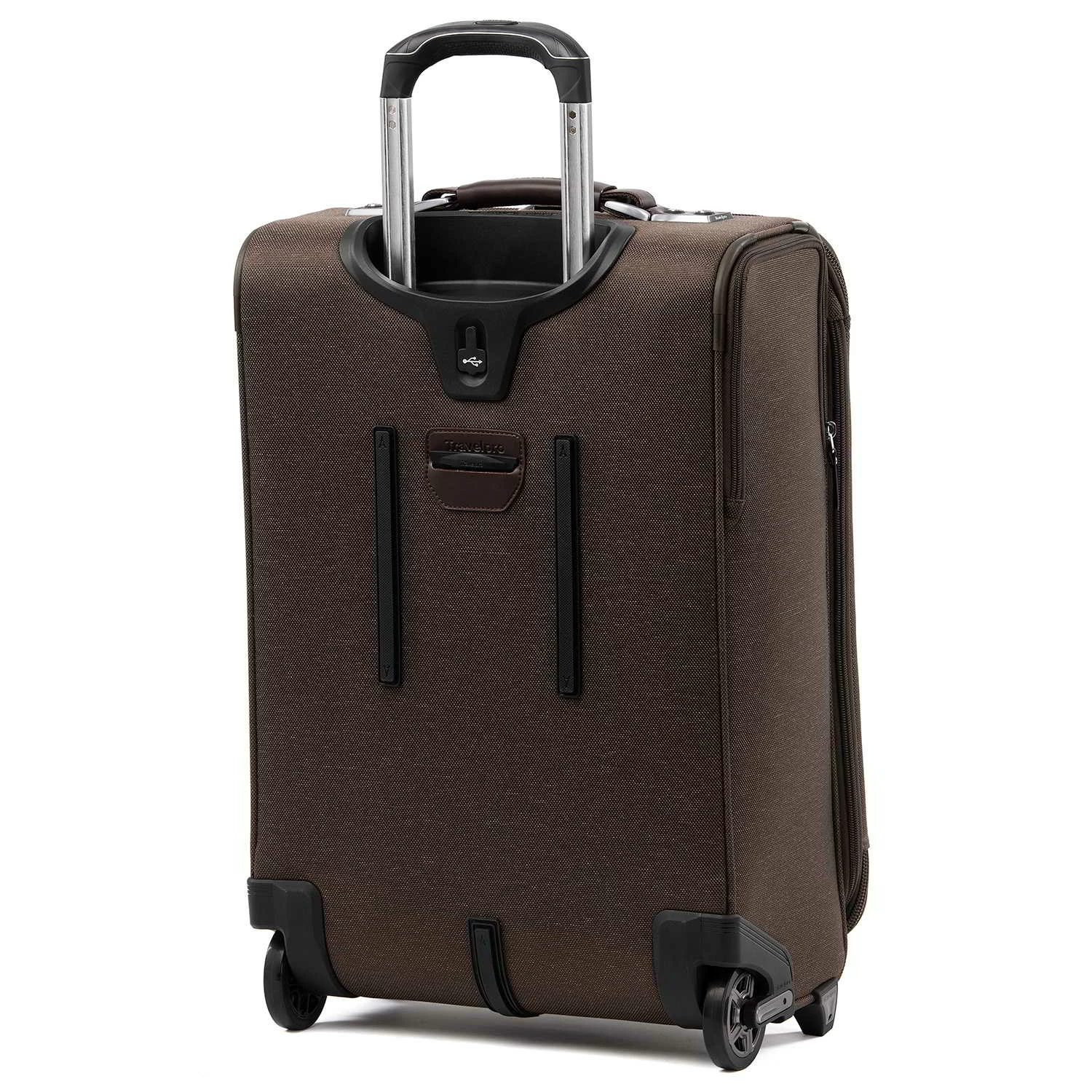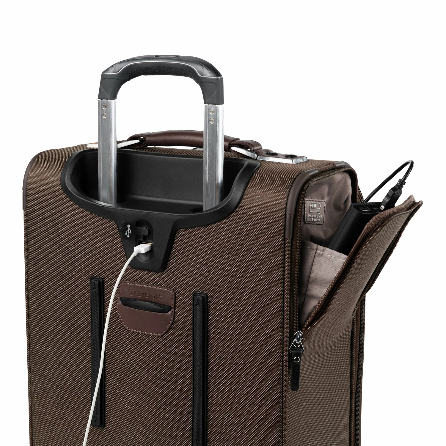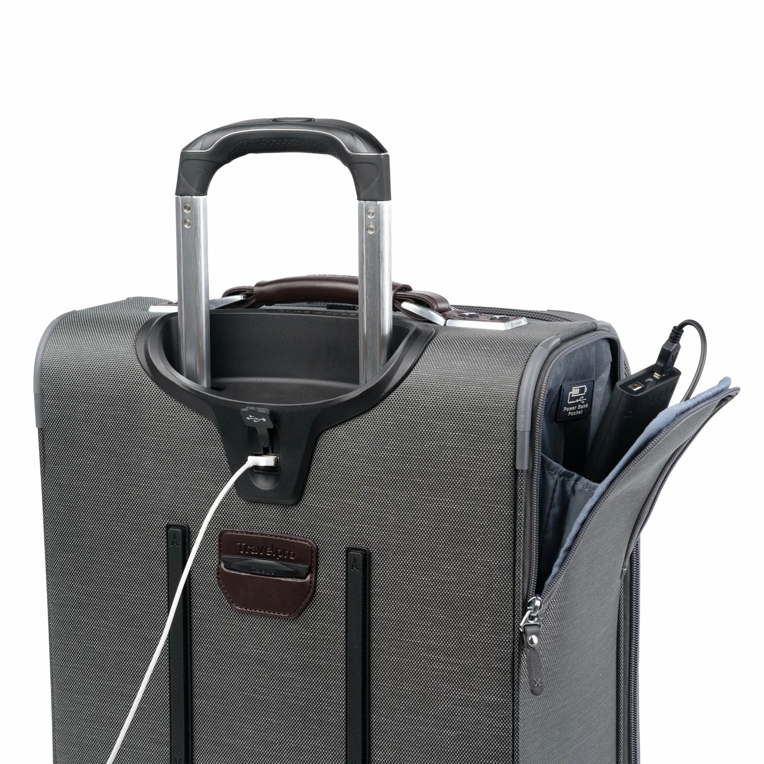 On its exterior, premium fabrics, genuine leather accents and chrome zippers deliver effortless sophistication, while an adjustable PowerScope extension handle minimizes wobble and keeps you rolling smoothly on two Rollaboard® wheels. A built-in USB port lets you power up on the go and a dedicated power bank pocket for your back-up battery adheres to FAA regulations. Backed by our Built for a Lifetime Limited Worry Free Warranty.