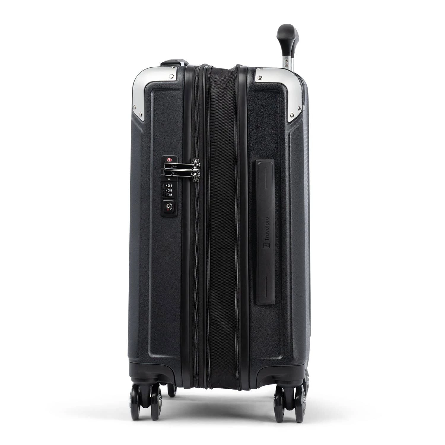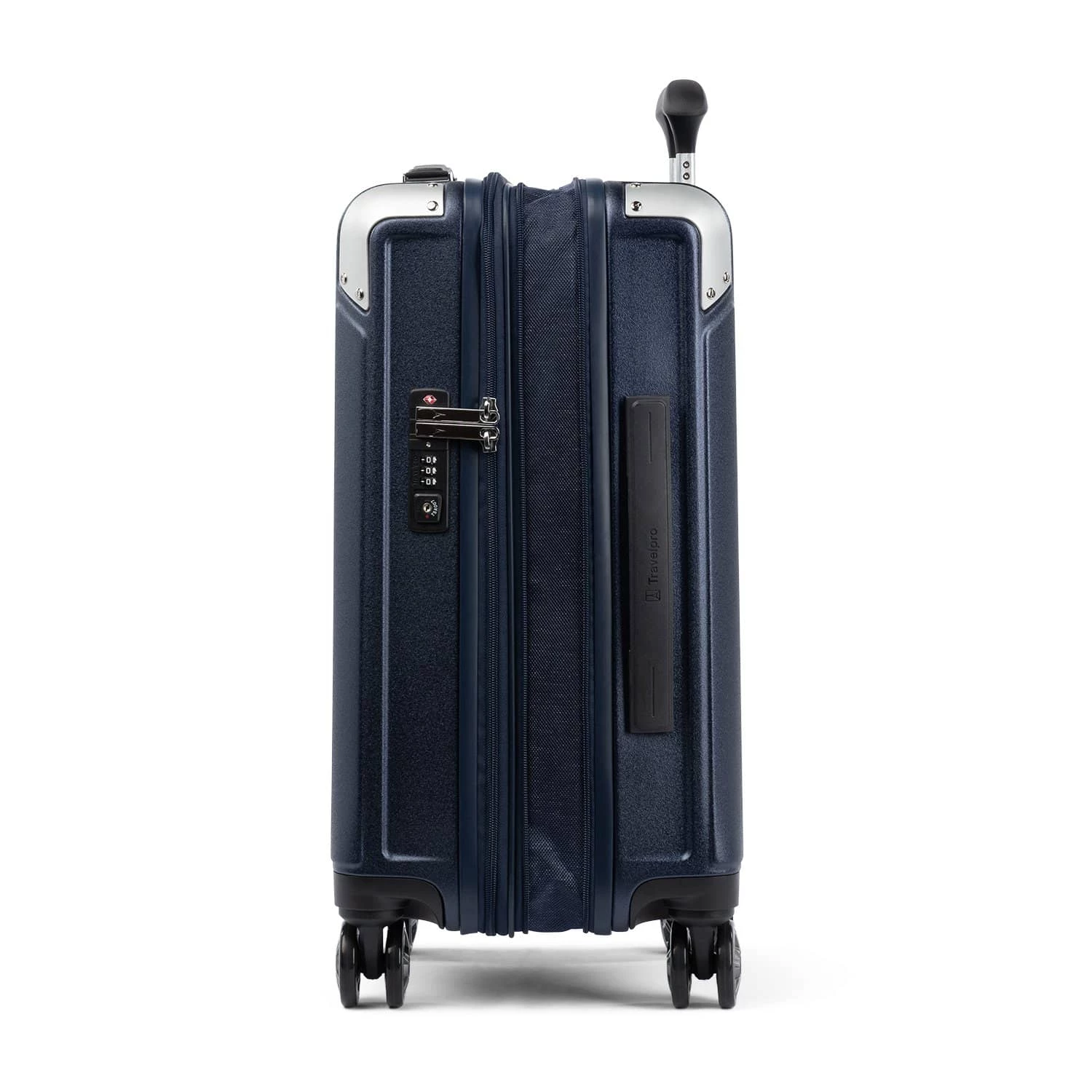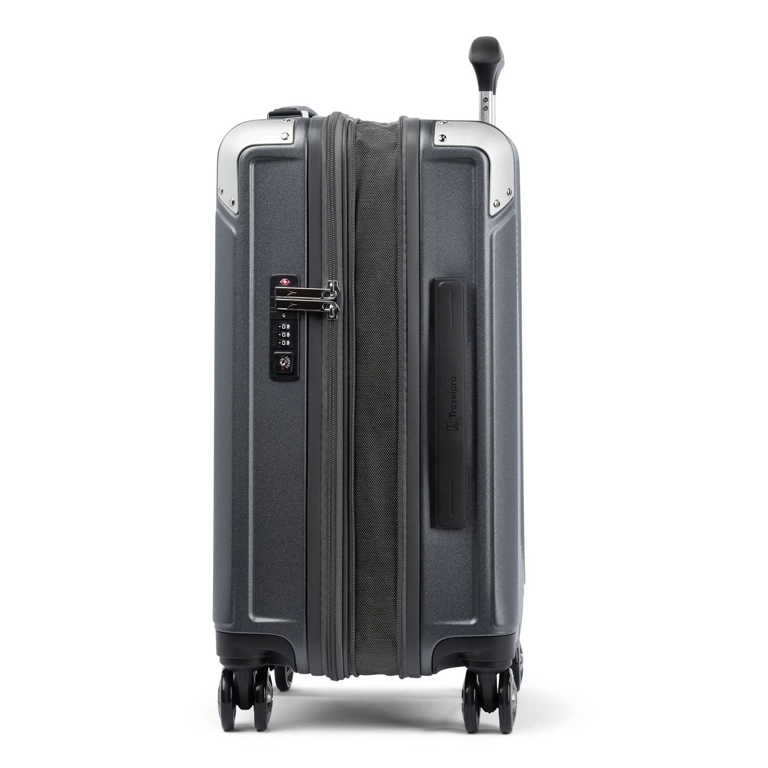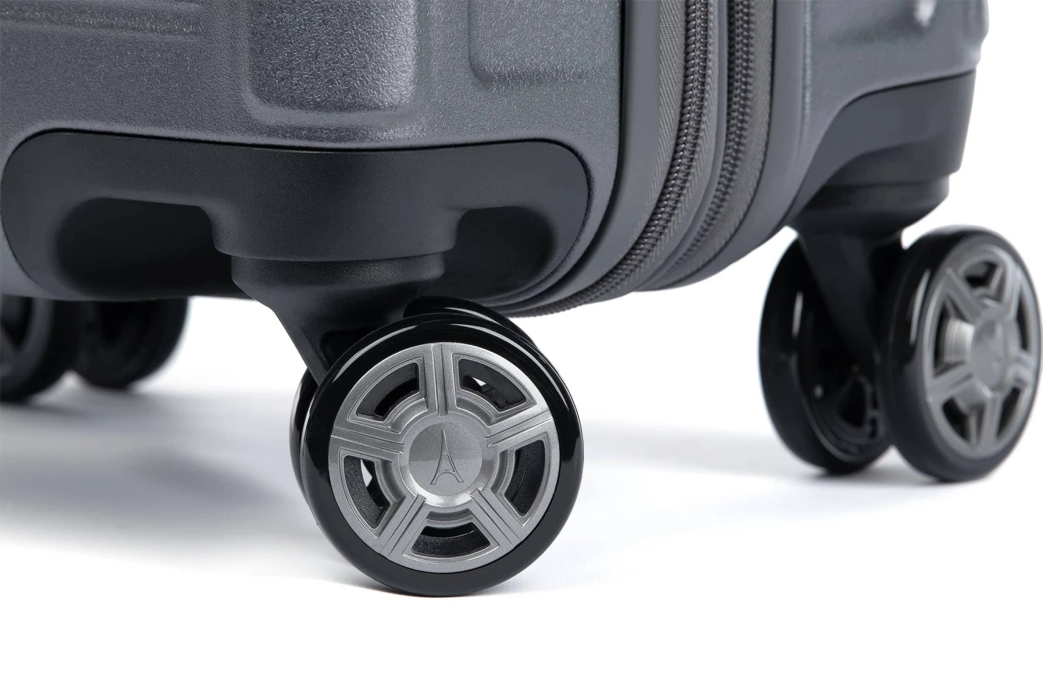On the move, this compact beauty flies with precise control and effortless roll, thanks to the Travelpro® exclusive PrecisionGlide™ System–eight MagnaTrac® self-aligning spinner wheels led by a sturdy, four-stop adjustable PowerScope Lite handle with comfortable Contour Grip.