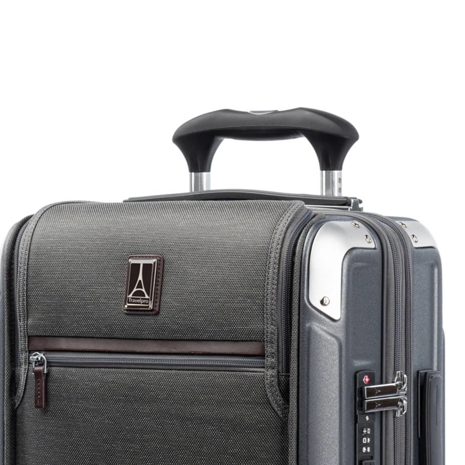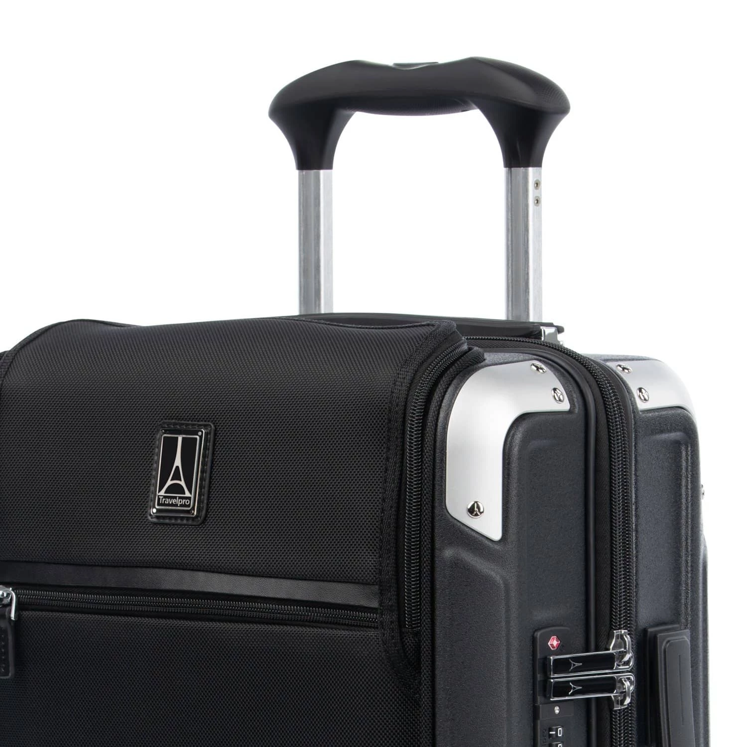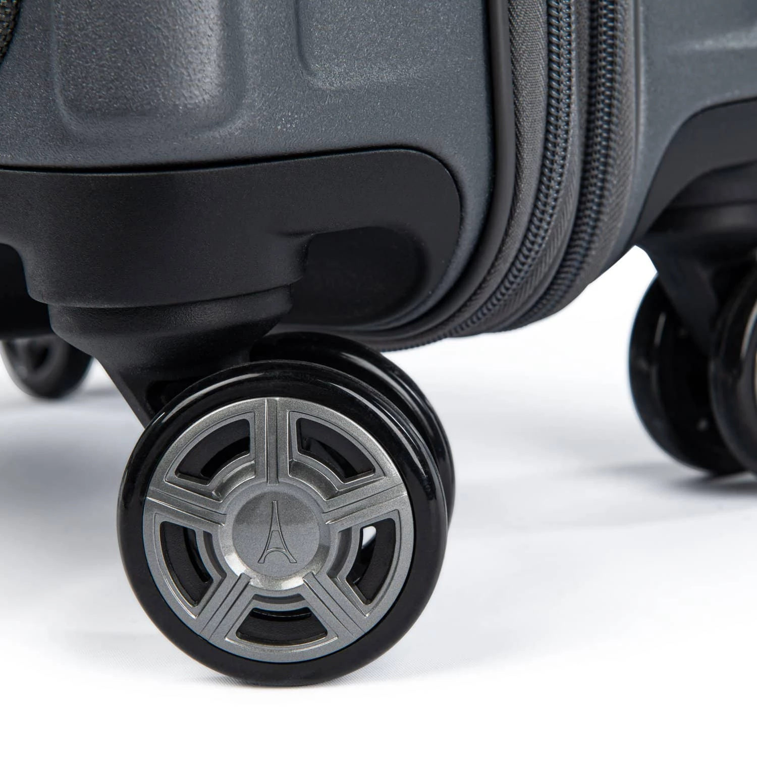 Hit the ground running with precise control and effortless roll, thanks to the Travelpro® exclusive PrecisionGlide™ System–eight MagnaTrac® self-aligning spinner wheels led by a sturdy, four-stop adjustable PowerScope Lite handle with comfortable Contour Grip.