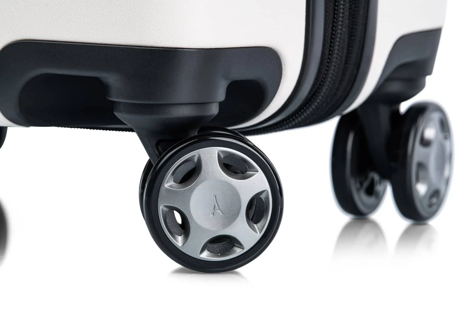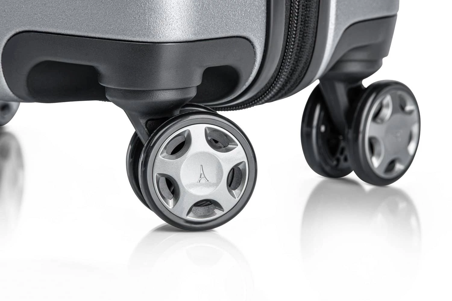 Wherever you roam–from carpeted hallways to cobblestone streets–the PrecisionGlide™ system saves you effort, delivering precise control and effortless roll with an ergonomic Contour Grip, 4-stop adjustable PowerScope Lite Handle and incomparably smooth-gliding, MagnaTrac® self-aligning magnetic Spinner Wheels on both bags.