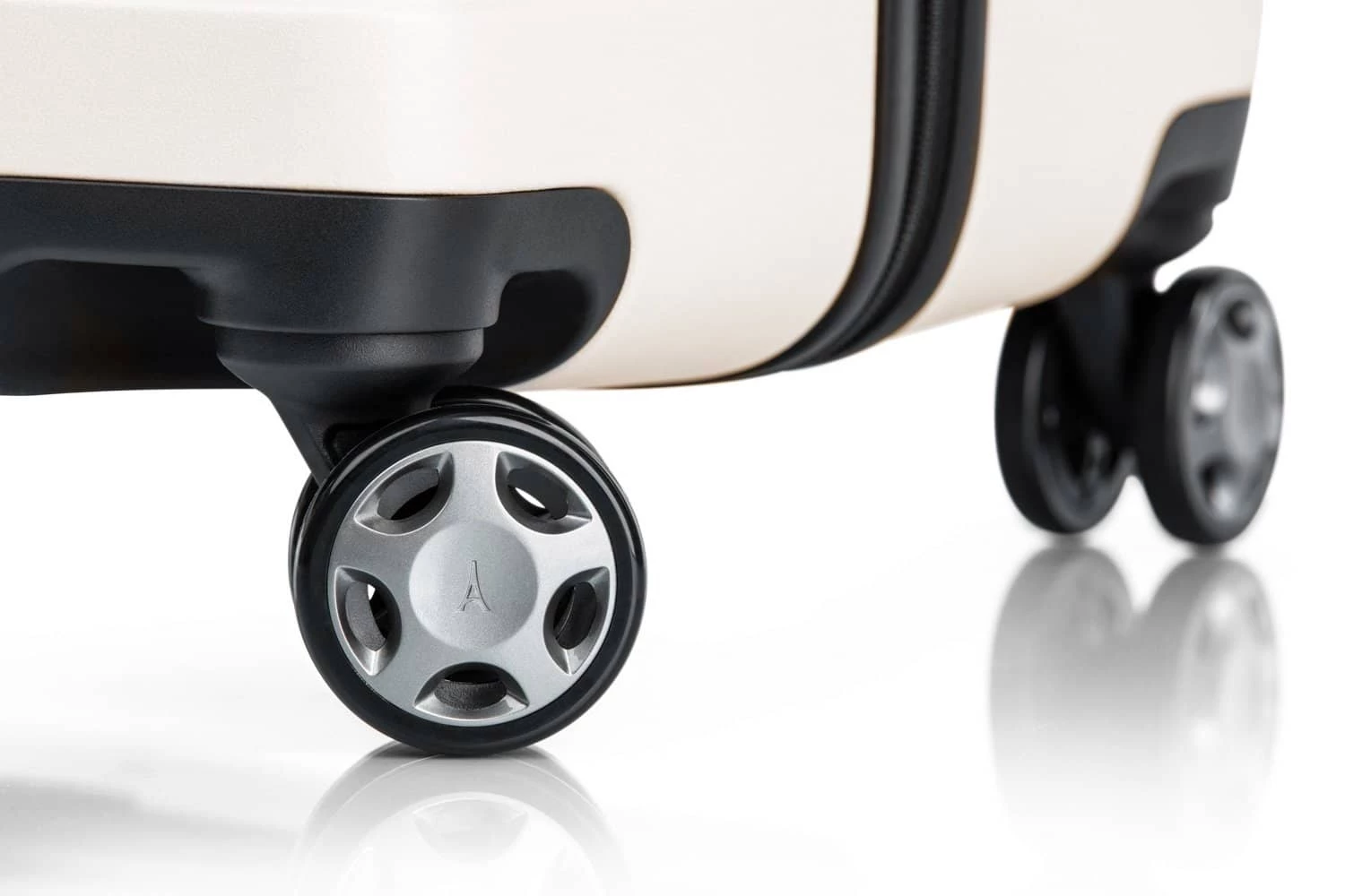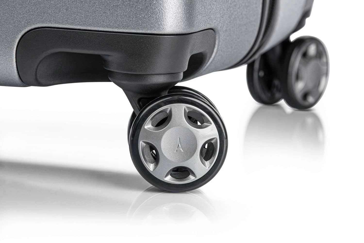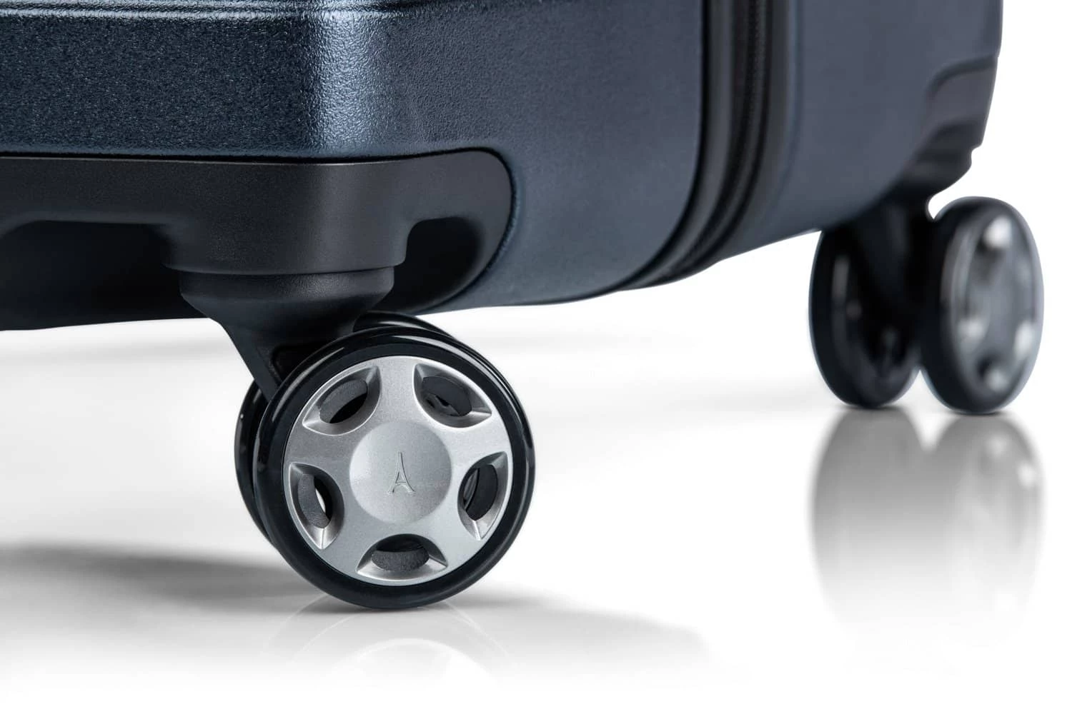 Wherever you roam–from carpeted hallways to cobblestone streets–the PrecisionGlide™ system saves you effort, delivering precise control and effortless roll, no matter how heavily you pack, with an ergonomic Contour Grip, 4-stop adjustable PowerScope Lite Handle and incomparably smooth-gliding, MagnaTrac® self-aligning magnetic Spinner Wheels.