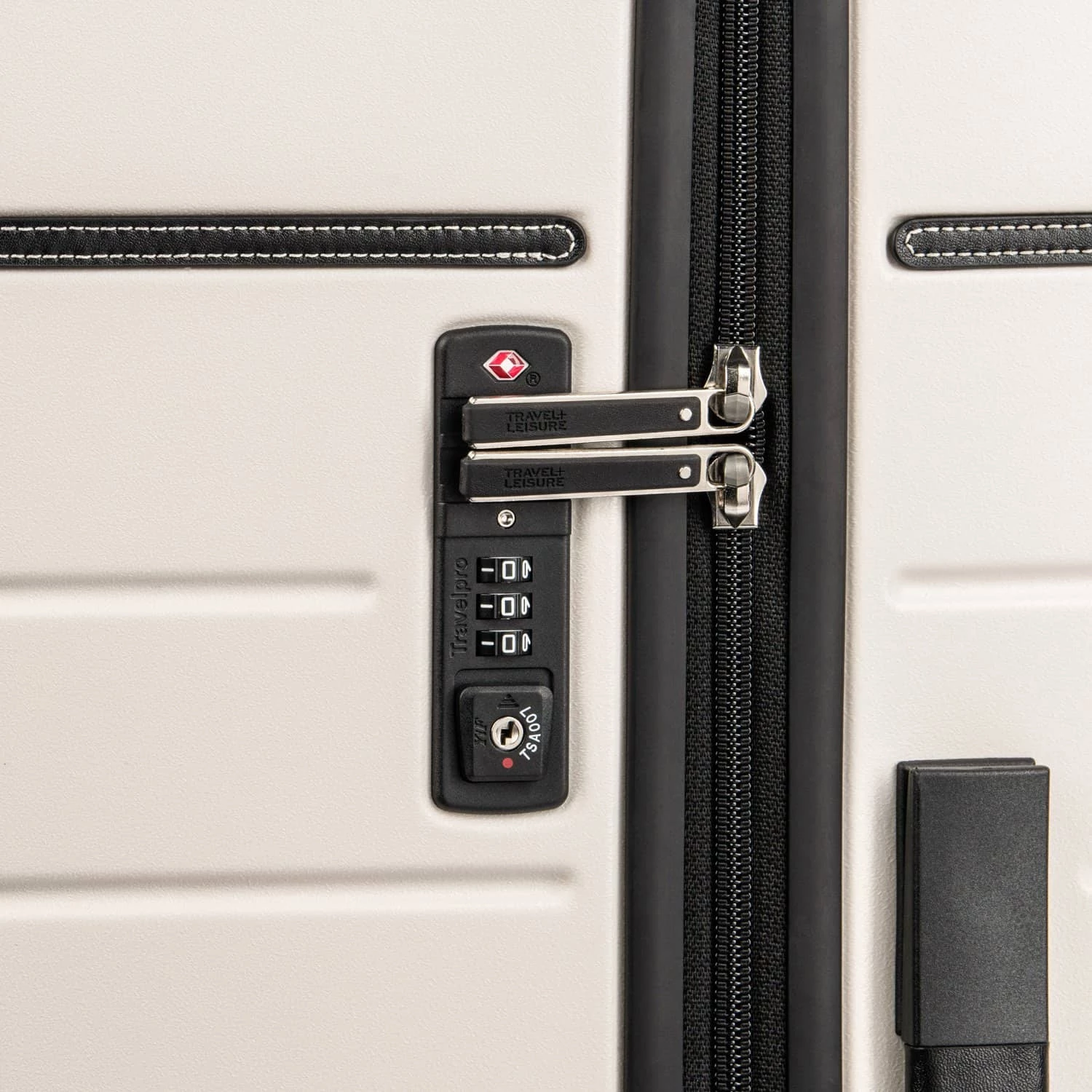 Strikingly elegant, the swoon-worthy Travelpro® x Travel + Leisure® Large Check-In Trunk Spinner begs you to raise your luggage standards with its uniquely modern aesthetic, guaranteed durability and practical features designed to enhance every journey. Created by those who know travel best, this gorgeous hard side trunk exceeds expectations while meeting airline size requirements for check-in luggage, offering style and substance yet remaining nimble and effortless to transport.